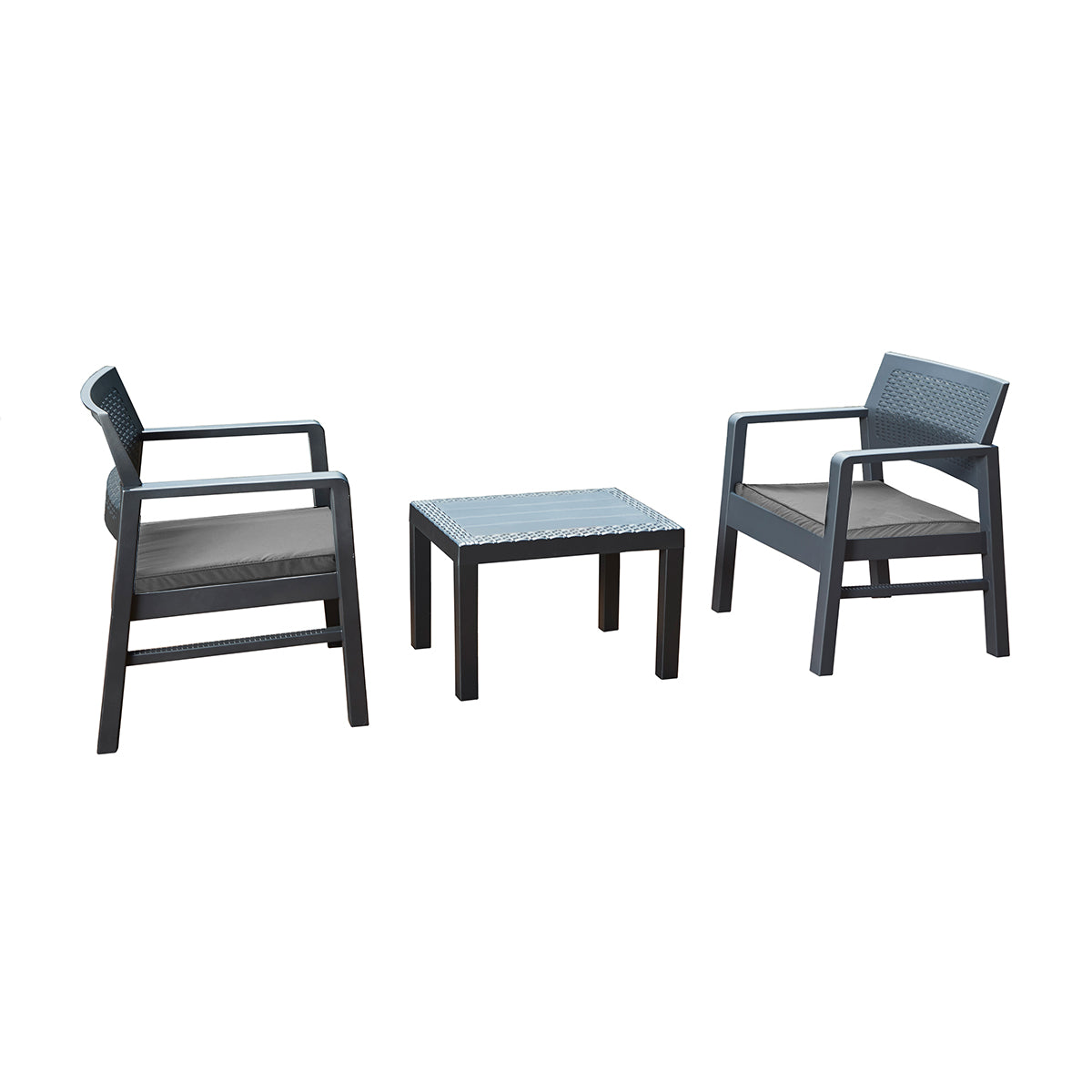 Composto por 2 cadeirões, 1 mesa de apoio e almofadas, o Set Kraka oferece um espaço acolhedor e moderno para desfrutar do ar livre. Fabricado em material resistente e de fácil manutenção, é a escolha ideal para momentos descontraídos com família ou amigos.